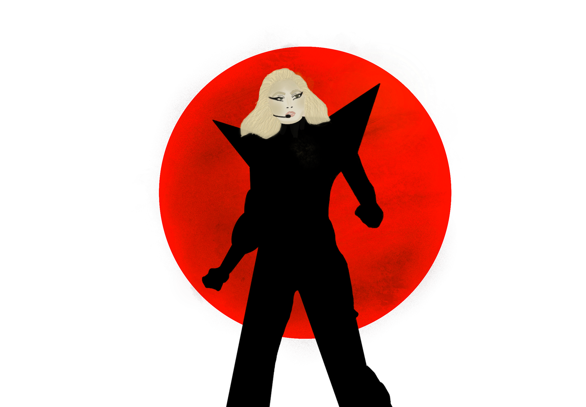 This digitally drawn Lady Gaga concert poster is an original creation that captures the electrifying spirit of her Chromatica Ball tour. Gaga stands in a powerful, commanding pose, dressed in bold black with sharp, angular shoulders — a reflection of her strength and avant-garde style. Behind her, a vivid red planet glows, symbolizing her explosive energy and larger-than-life persona. The bold white letters of her name stretch dramatically across the top, adding contrast and impact. Set against a stark black background, this poster embodies Gaga’s fearless creativity and pop power.