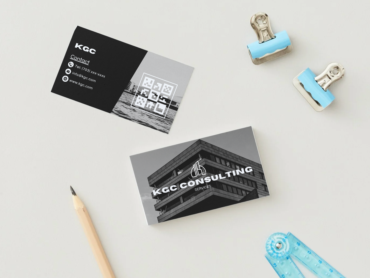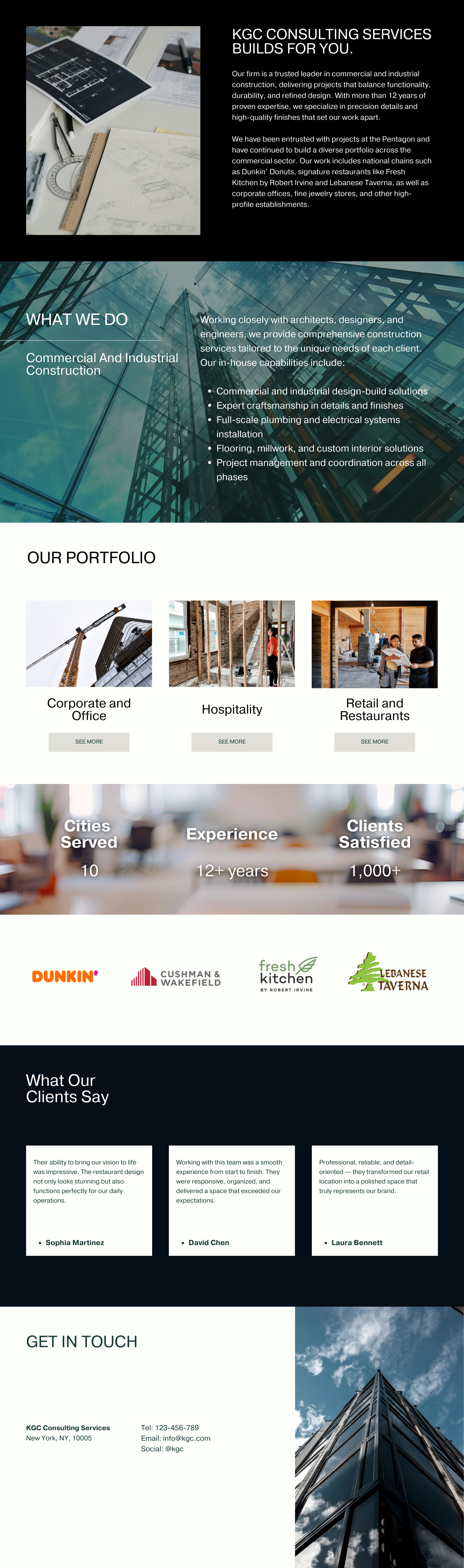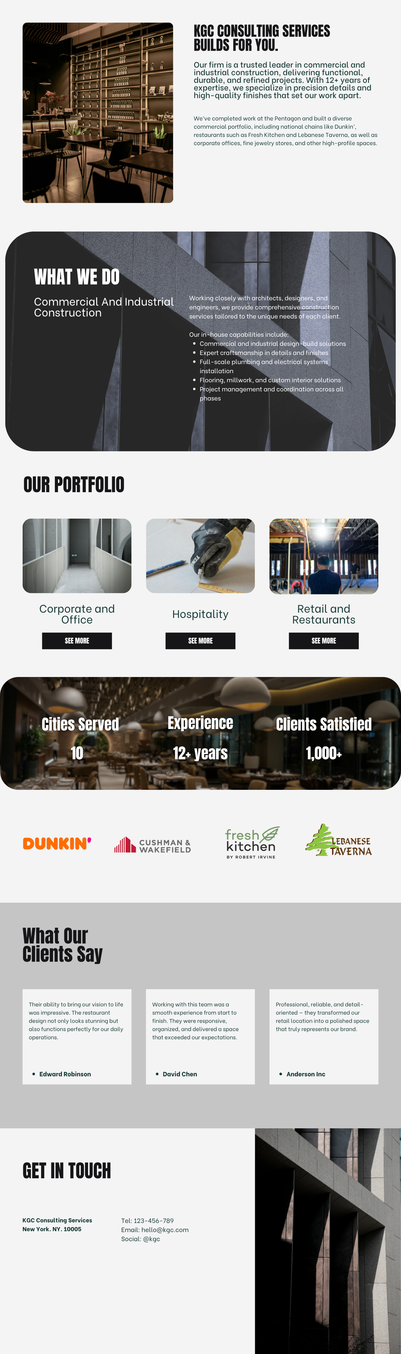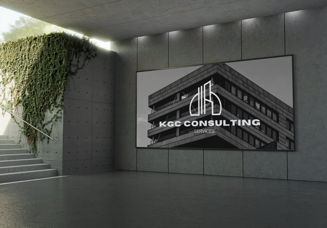 The logo is a creative representation of the company name, KGC, where the letter “K” is designed to resemble a series of buildings. This reflects the company’s focus on commercial and industrial construction, visually connecting the brand to its field of expertise. The buildings vary in height and shape, adding a dynamic and modern feel that suggests growth, stability, and innovation.