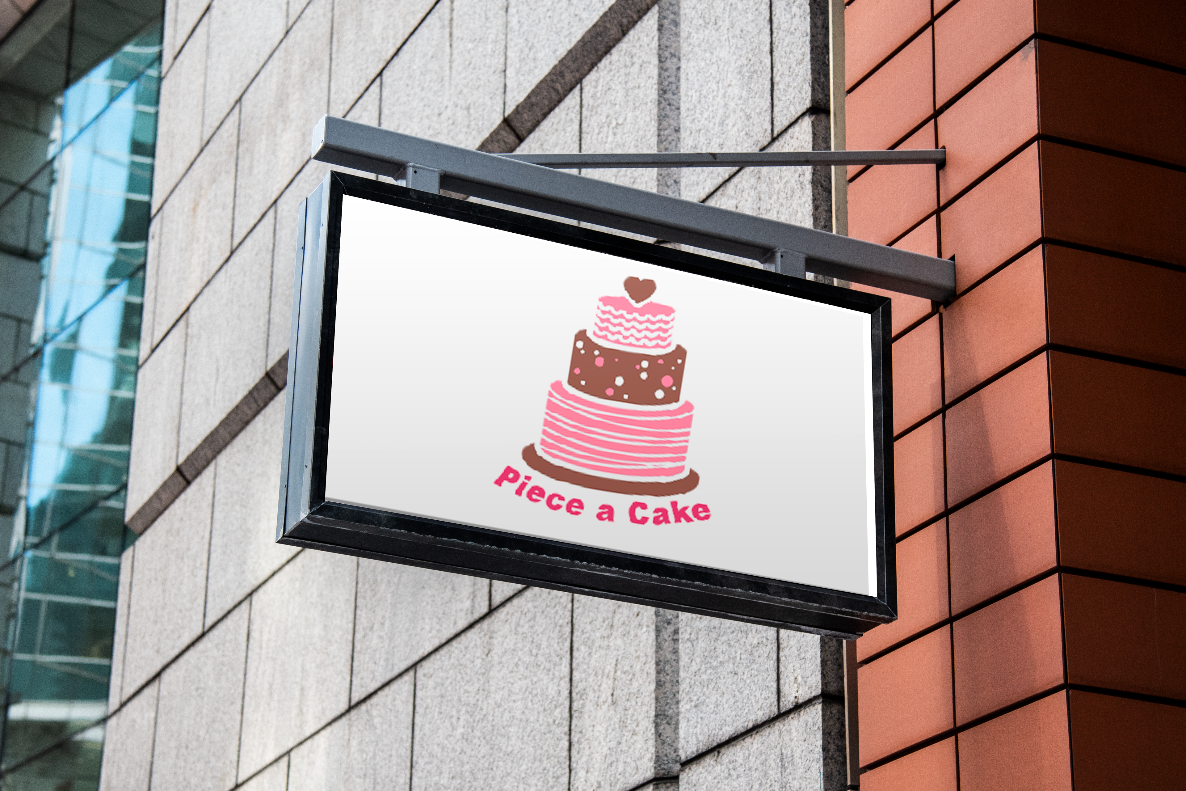 The Piece A Cake logo captures the bakery’s playful and warm personality. The stacked cake symbolizes celebration and creativity, while the pink adds sweetness and fun, and the brown tones evoke chocolate and comfort. The heart topper and rounded text make the design feel friendly, inviting, and full of charm.