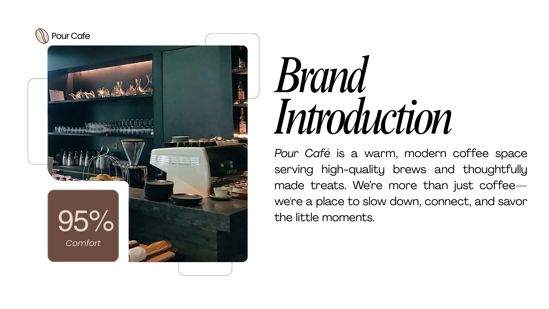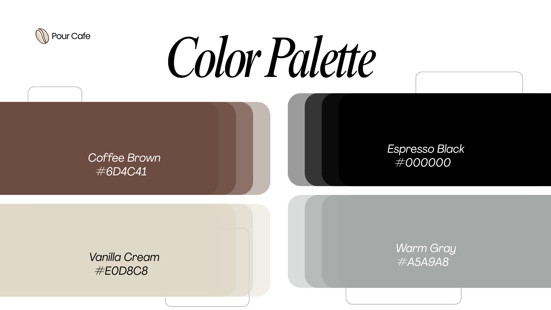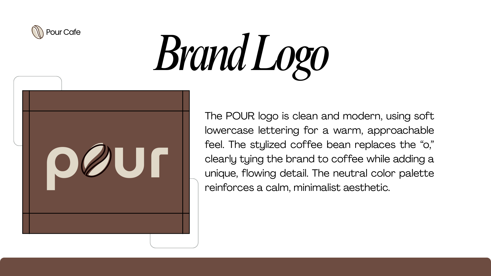 The brand identity translates this feeling into a cohesive visual system. A clean logo, soft typography, and a subtle coffee-bean detail create a balance between simplicity and warmth, while a neutral color palette supports a calm, modern aesthetic.
