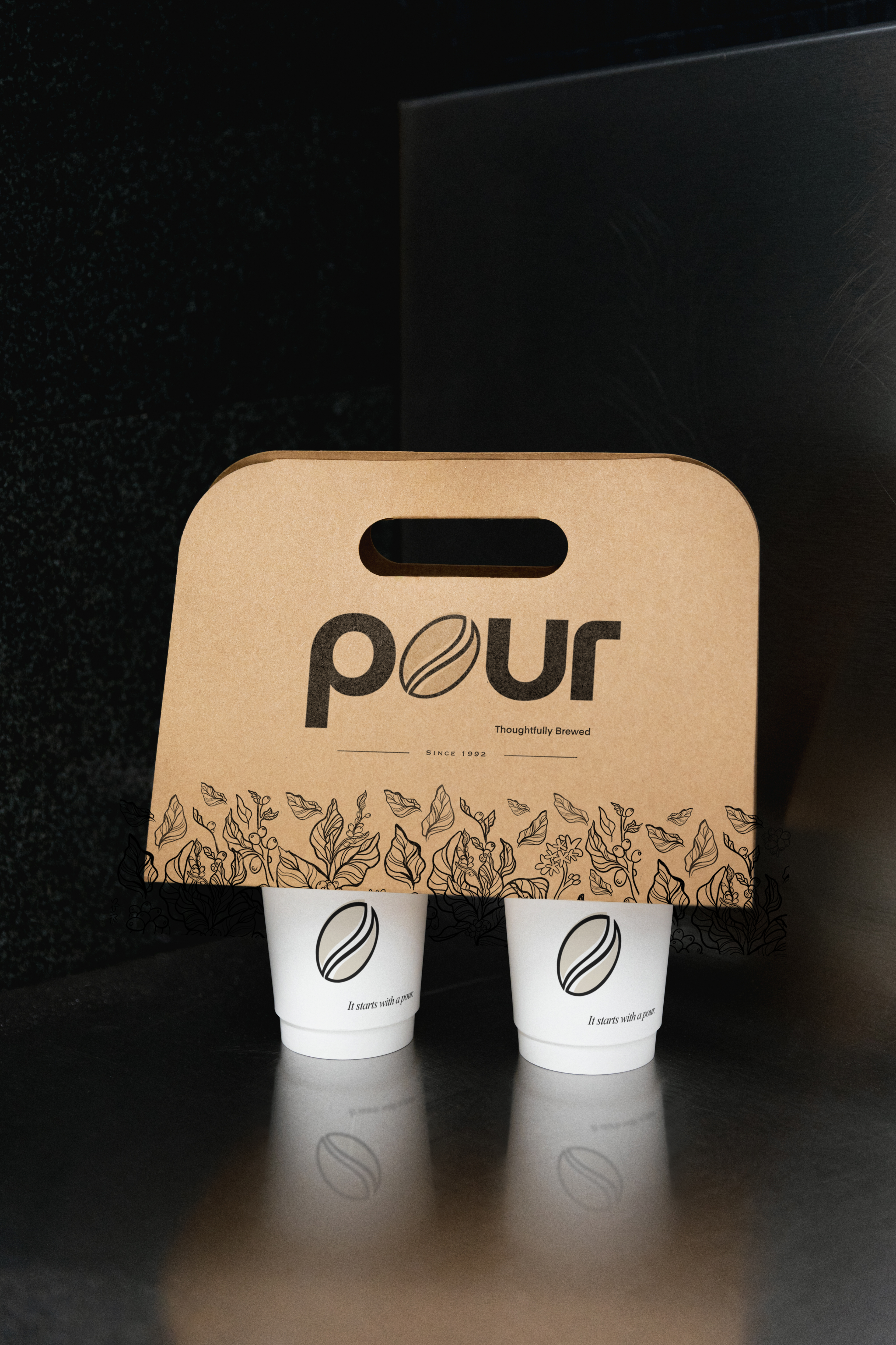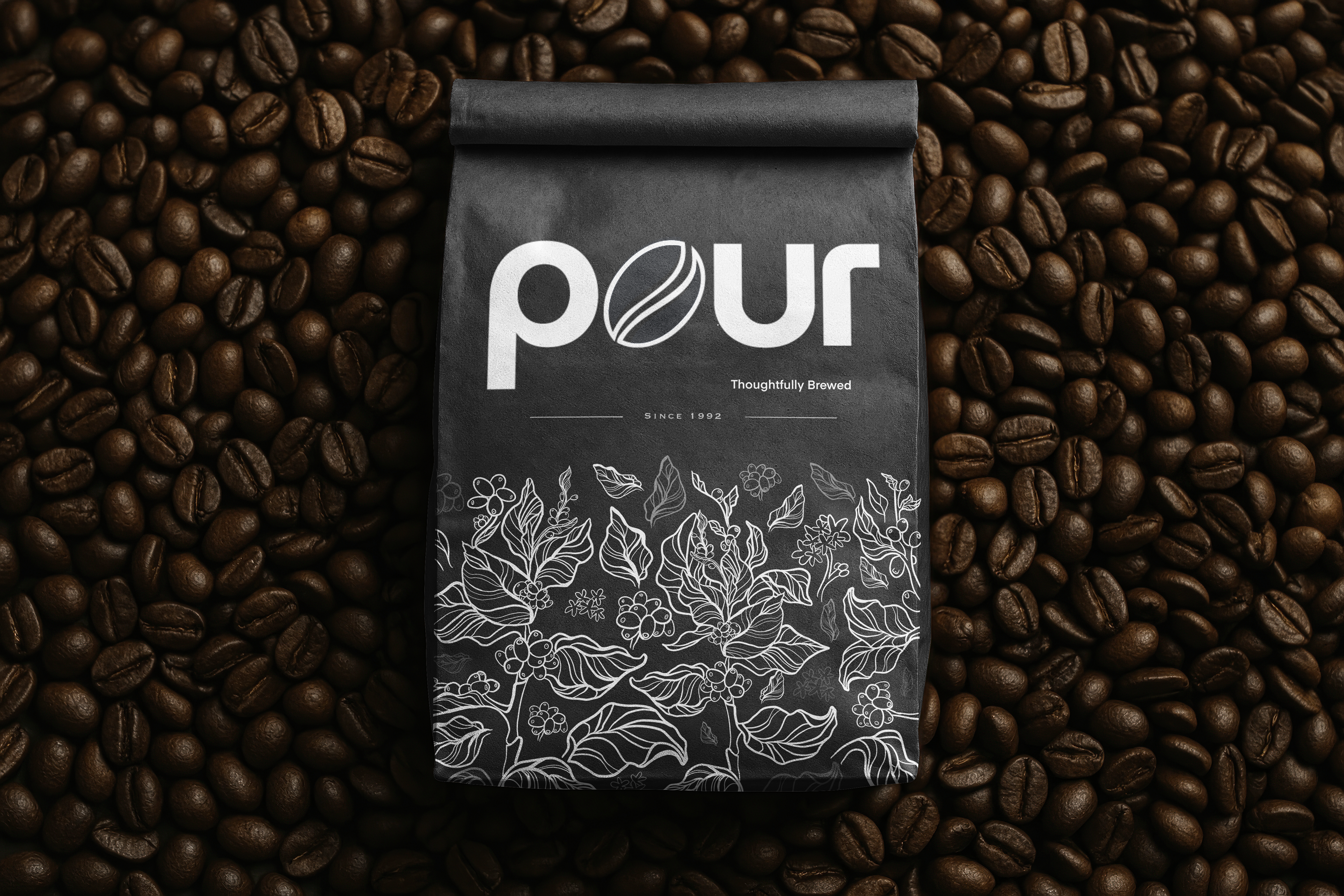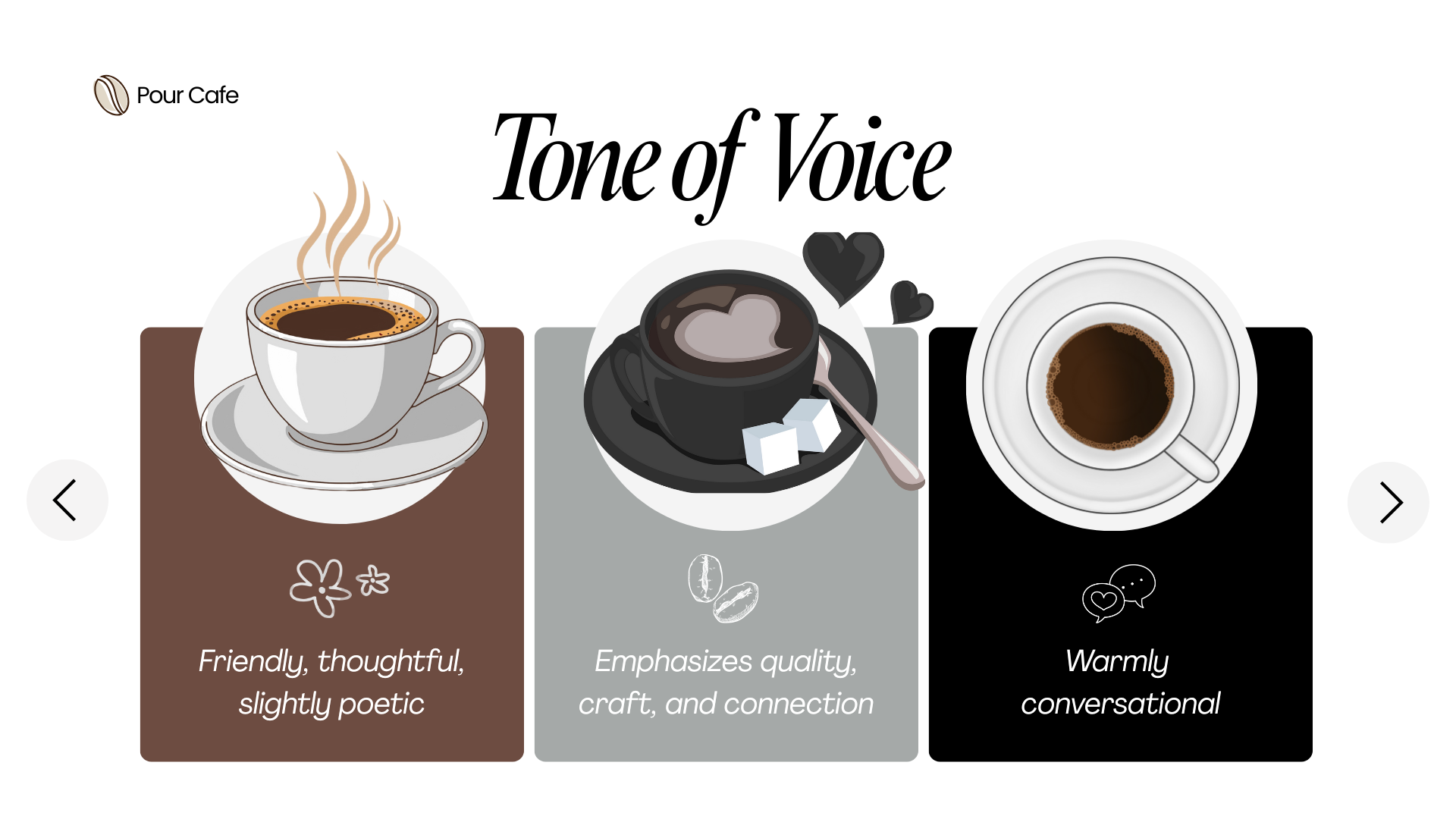 The brand identity translates this feeling into a cohesive visual system. A clean logo, soft typography, and a subtle coffee-bean detail create a balance between simplicity and warmth, while a neutral color palette supports a calm, modern aesthetic.