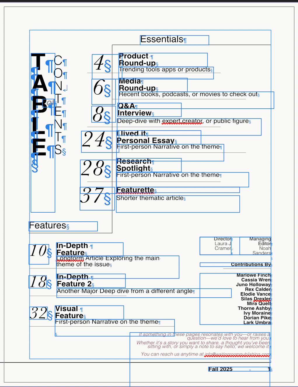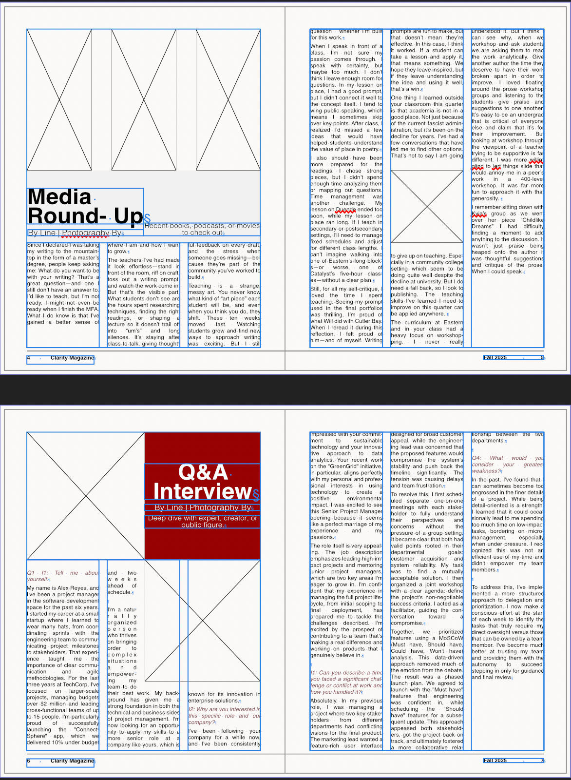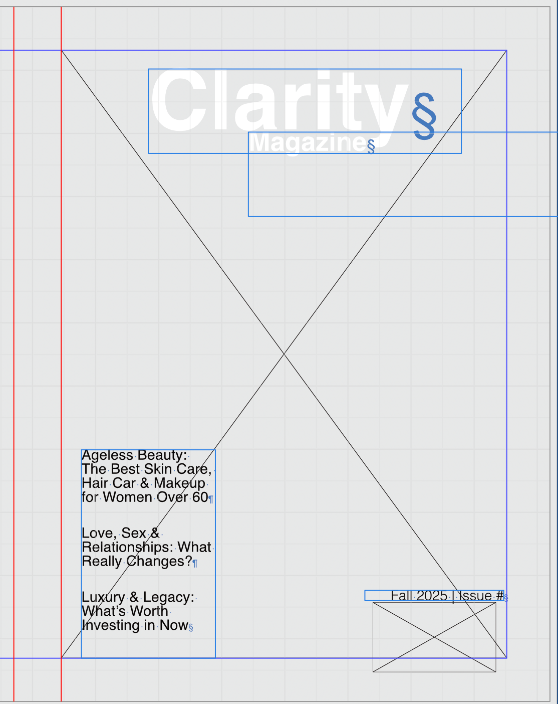 I designed full editorial layouts for Clarity Magazine, Candlelight, and The Grand Life, including their tables of contents. Each 50-page issue follows the brand book guidelines, applying specific typefaces, color palettes, and tonal direction while meeting Design Specs, Production Standards, and Standard Editorial Layout requirements. The final designs reflect cohesive, publication-ready magazines that balance clarity, consistency, and reader engagement.